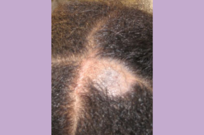 Small patches of hairloss with indentations denuded of hair all over the scalp often described as like "Foot prints in the Snow". In most cases very little inflammation and it can remain dormant for years. This type of hairloss is classed as cicatrical alopecia (permanent hairloss). The cause is unknown but treatment with topical antibiotics does help.